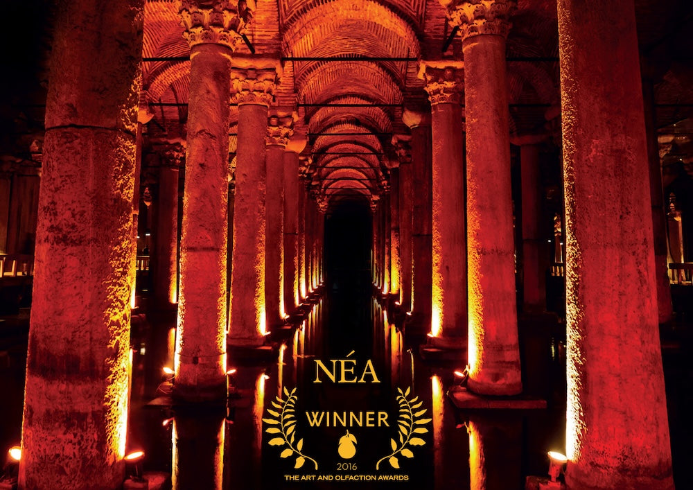 Néa is a sumptuous gourmand journey, inspired by the opulence and sensuality of Byzantine splendour. It opens with a radiant blend of date, pomegranate, and palm leaf — a golden sweetness laced with sunlit freshness.